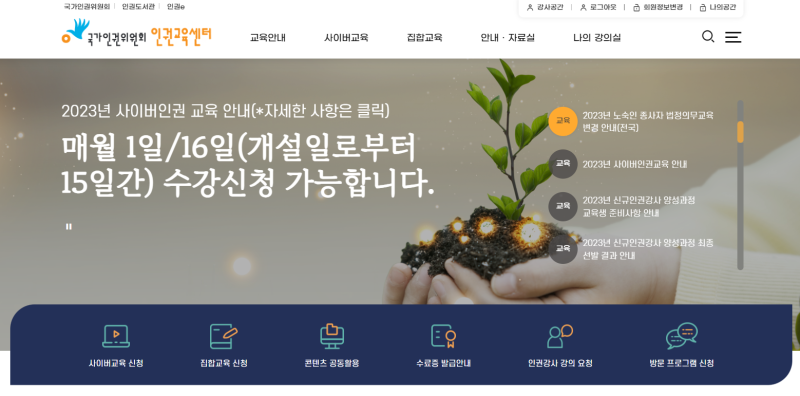 공직자를 위한 사이버 인권 교육, 일반 시민을 위한 인권 교육 등 다양한 프로그램이 마련되어 있습니다.