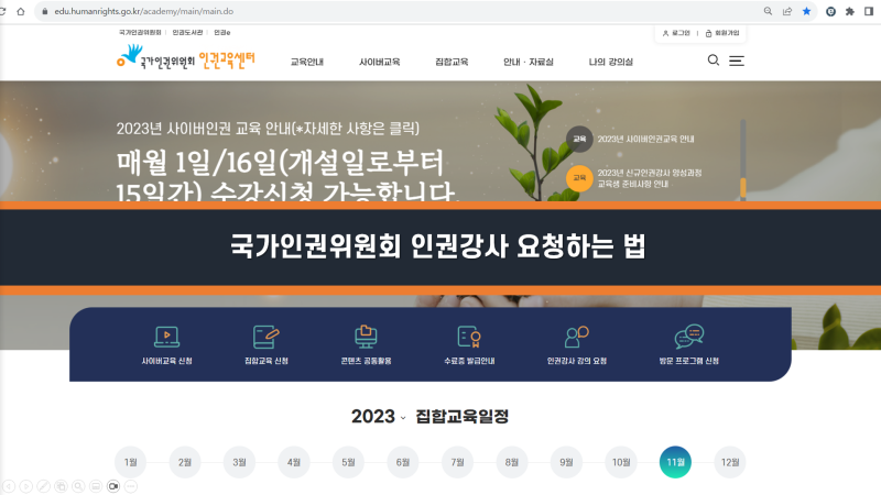 인권교육센터의 연간 교육 일정